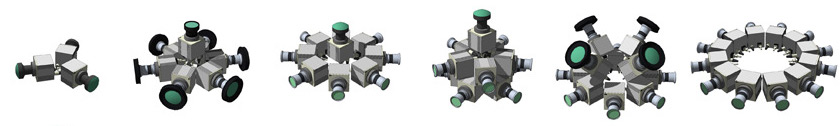 Sa systématisation – c’est-à-dire le respect du point de vue unique – conduisit aux dispositifs de prise de vue polyédrique comme l’appareil de Férier en 1866 et, en 1882, l’appareil Triboulet destiné à être accroché sous la nacelle d’une montgolfière [18]. Ces dispositifs utilisent plusieurs appareils photographiques assemblés en structure polygonale régulière (un décagone régulier dans le cas de l’appareil de Férier). Les différentes vues à perspective plane étaient ensuite soigneusement juxtaposées pour décrire le panorama, les raccords étant maquillés ou non.