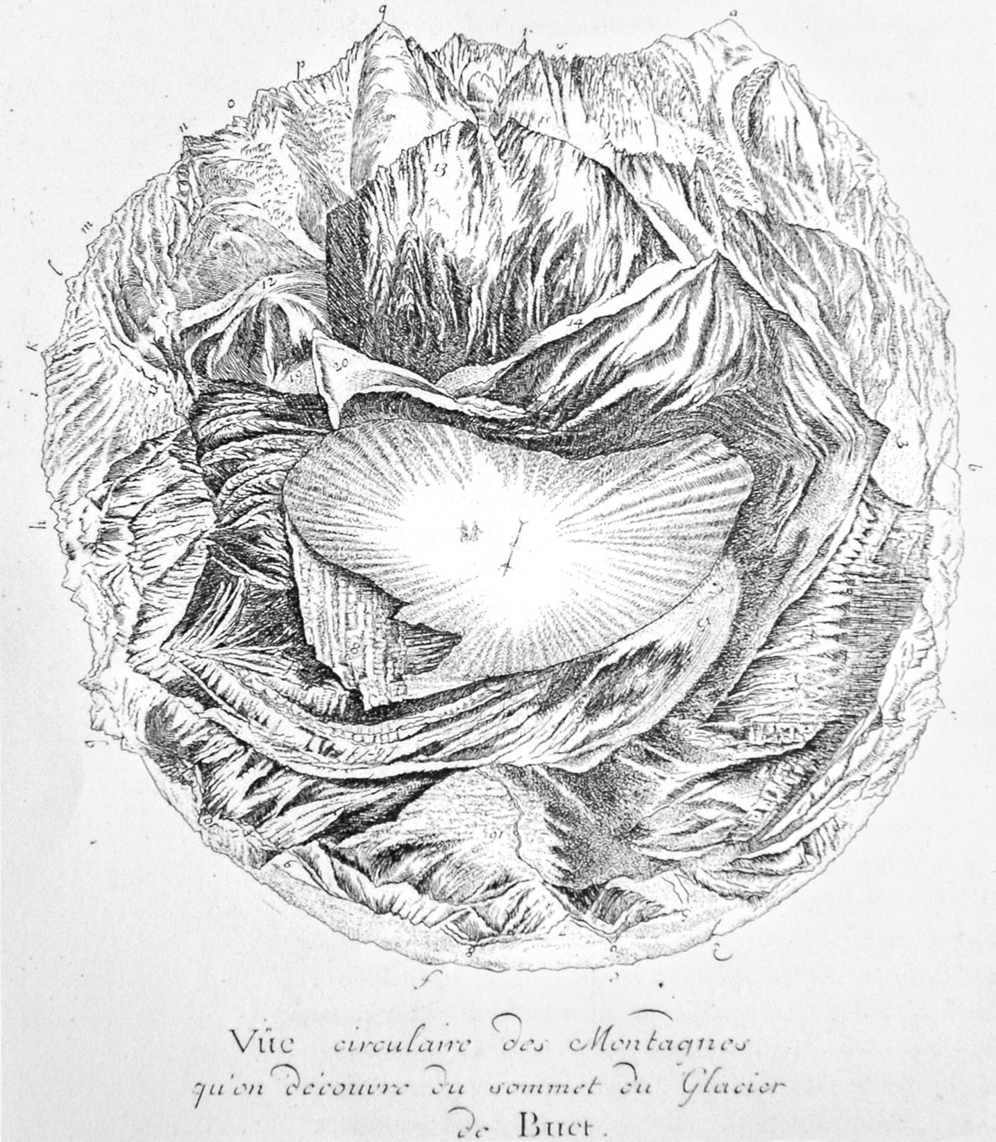 Vue circulaire des montagnes, Horace Benedict de Saussure, 1776. Source : Stephan Oettermann, The Panorama, p.36