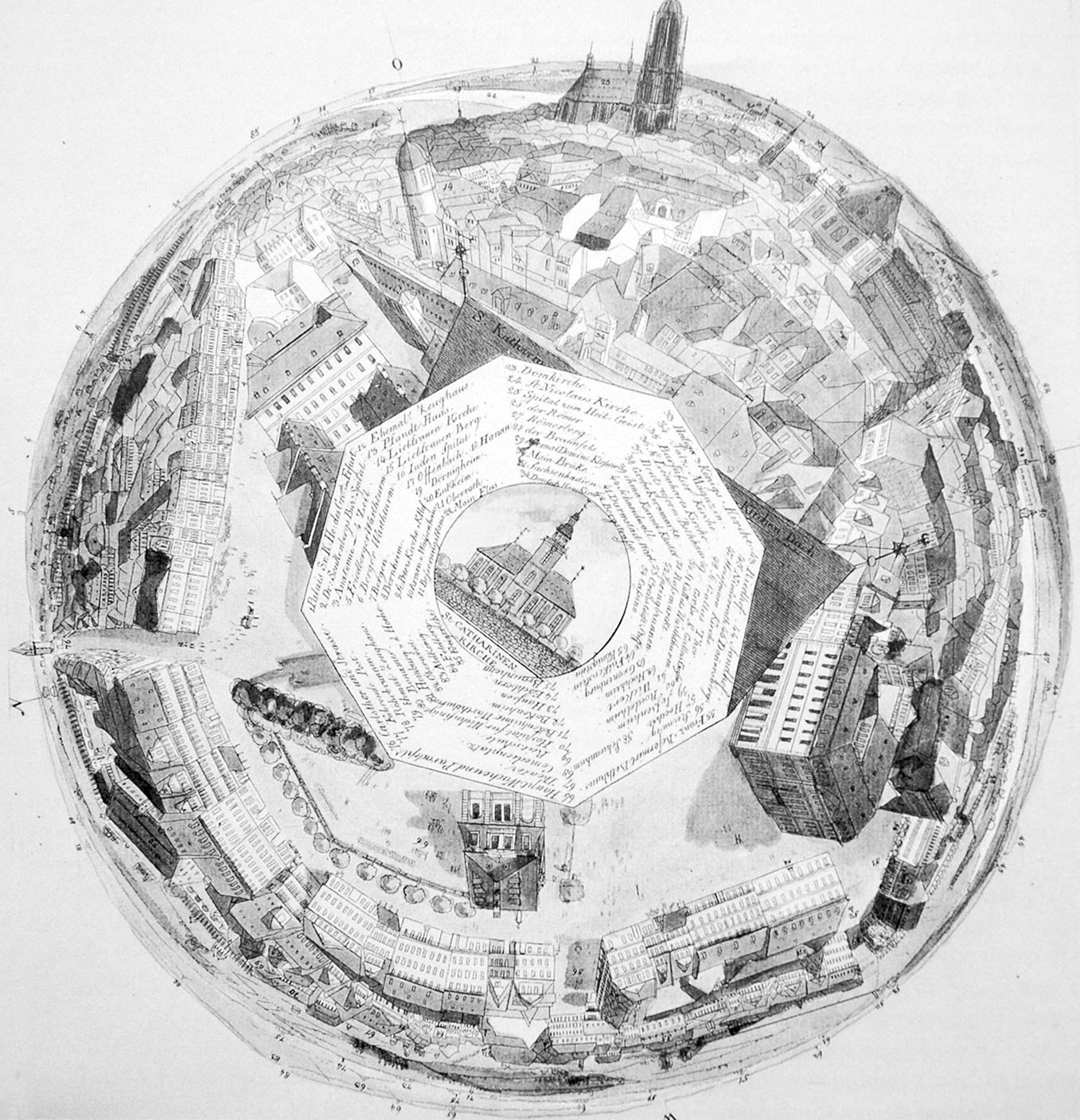 Figure I-38b Plan anamorphique du panorama de Francfort. Morgenstern and Wilck, Historisches Museum, Francfort, 1810. Source : Stephan Oettermann, The Panorama, p.184.